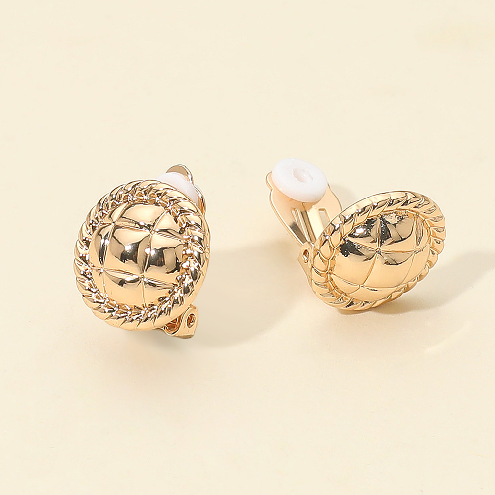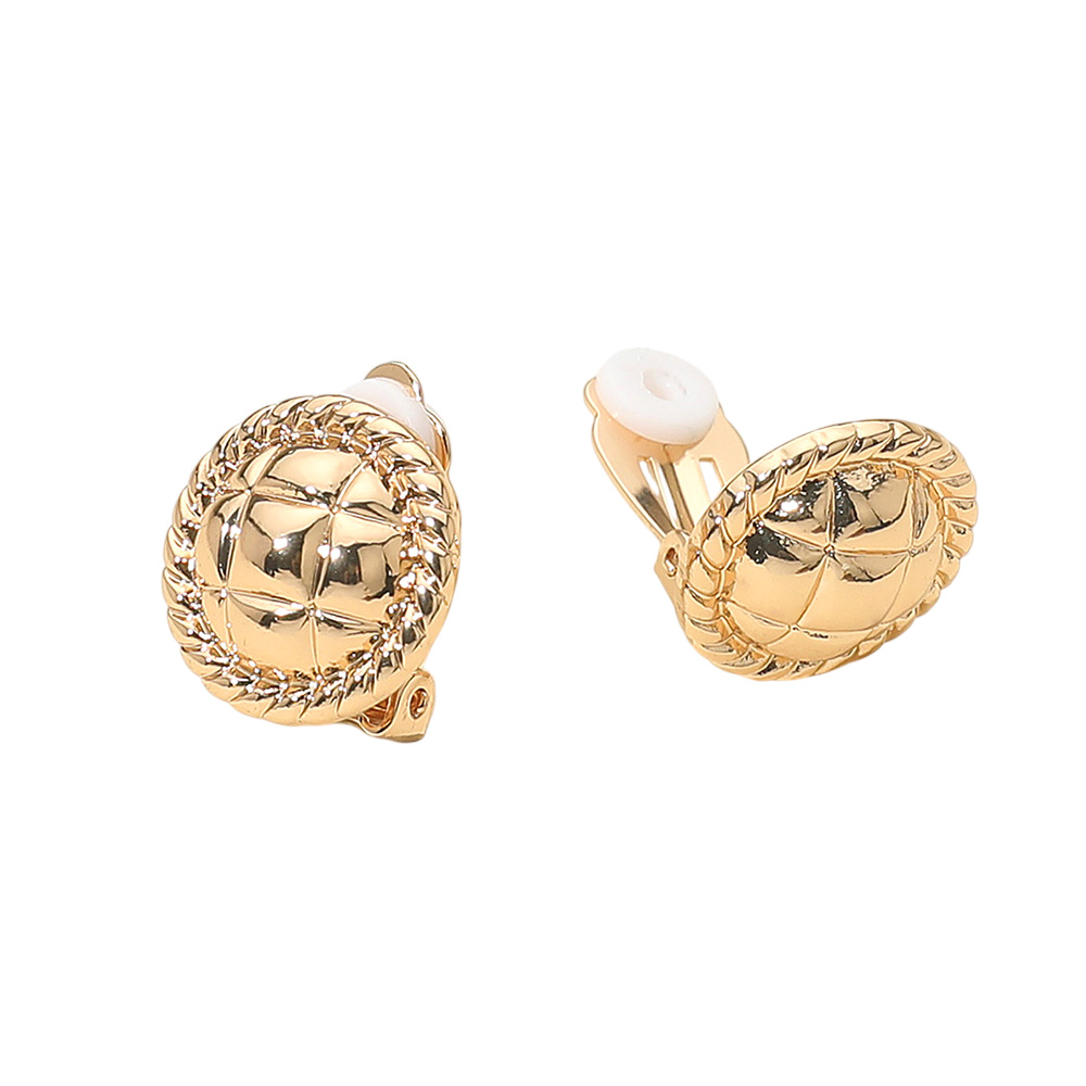 Details • Size : 0.7" X 0.7" • Clip On • Elegant round clip-on earrings featuring a quilted pattern with braided edge detail. Comfortable for non-pierced ears, these timeless earrings add a sophisticated touch to casual or dressy outfits, making them versatile accessories for everyday wear or special occasions. • Lead and Nickel Compliant