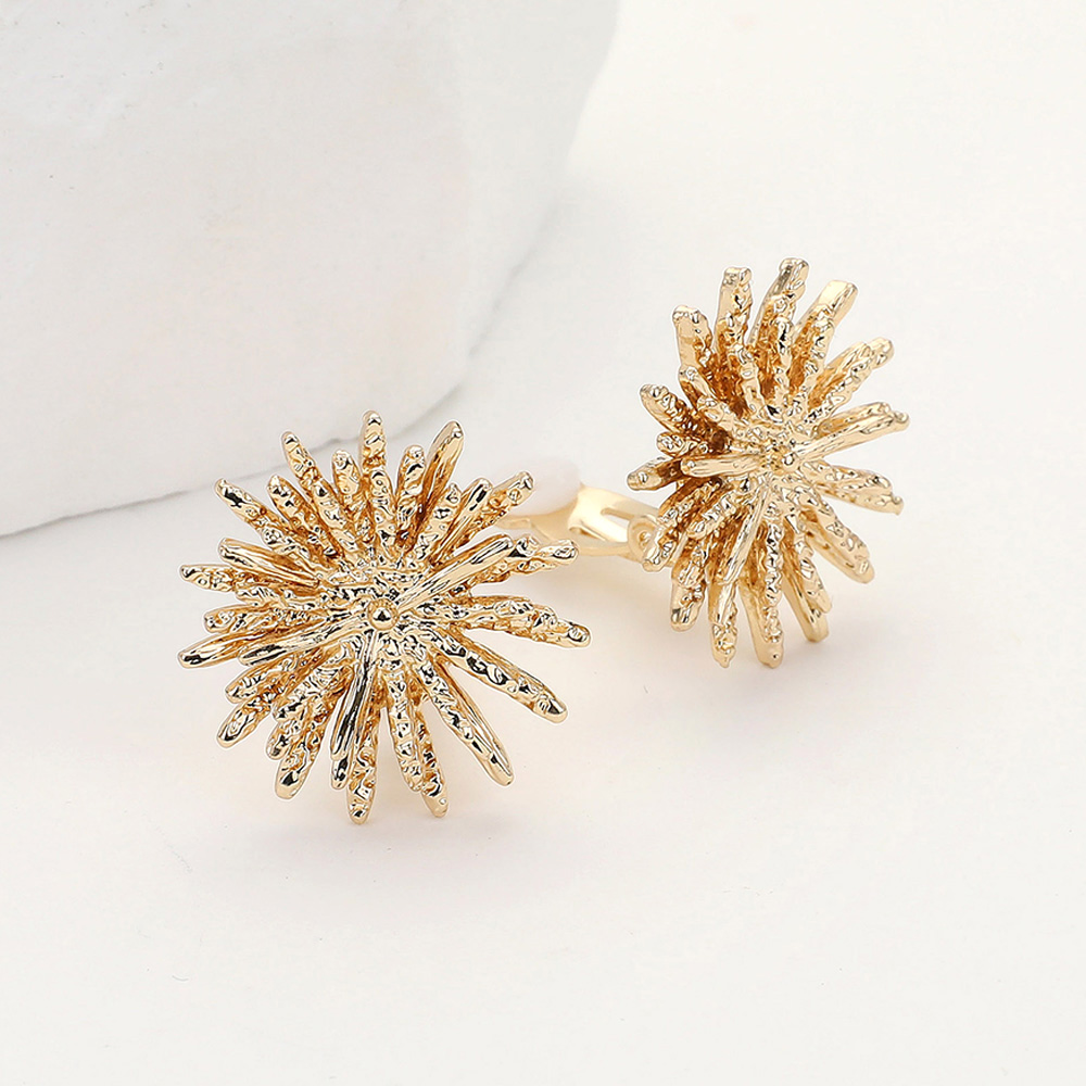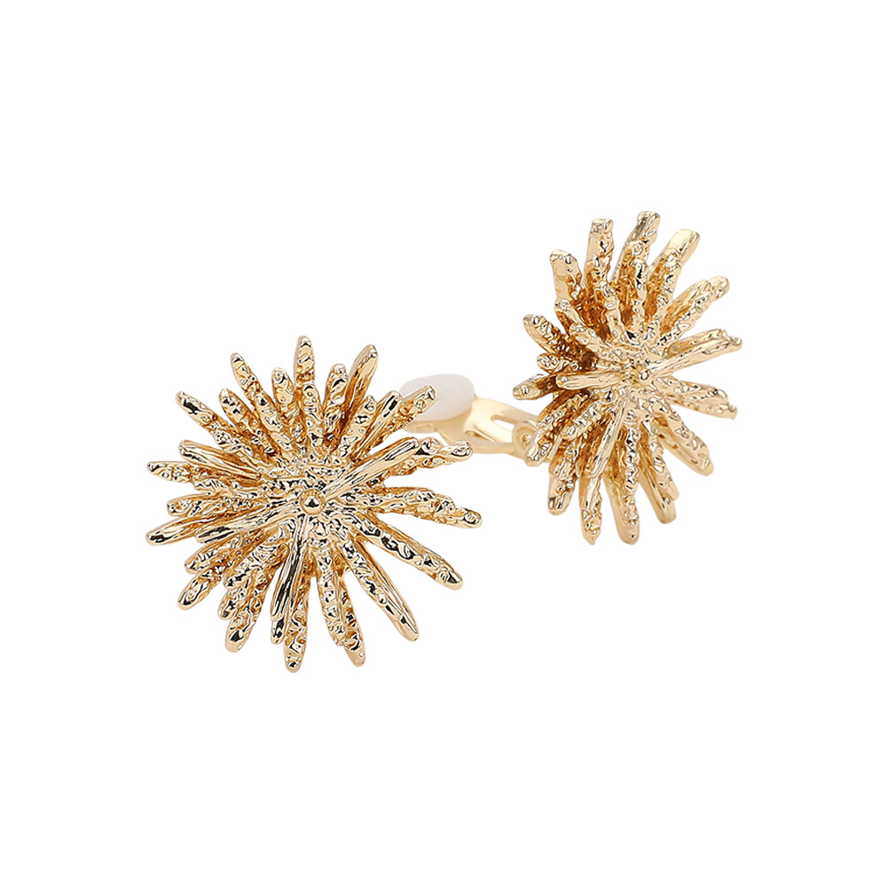 Details • Size : 0.9" X 0.9" • Clip On • Add dazzling brilliance to your style with these radiant starburst clip-on earrings. Designed with intricate detailing for a bold yet elegant look, they capture light beautifully from every angle. Perfect for special occasions or adding sparkle to everyday wear—no piercings required. • Lead and Nickel Compliant