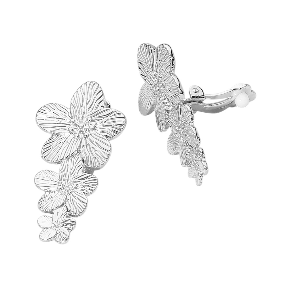 Textured Metal Triple Flower Drop Clip On Earrings