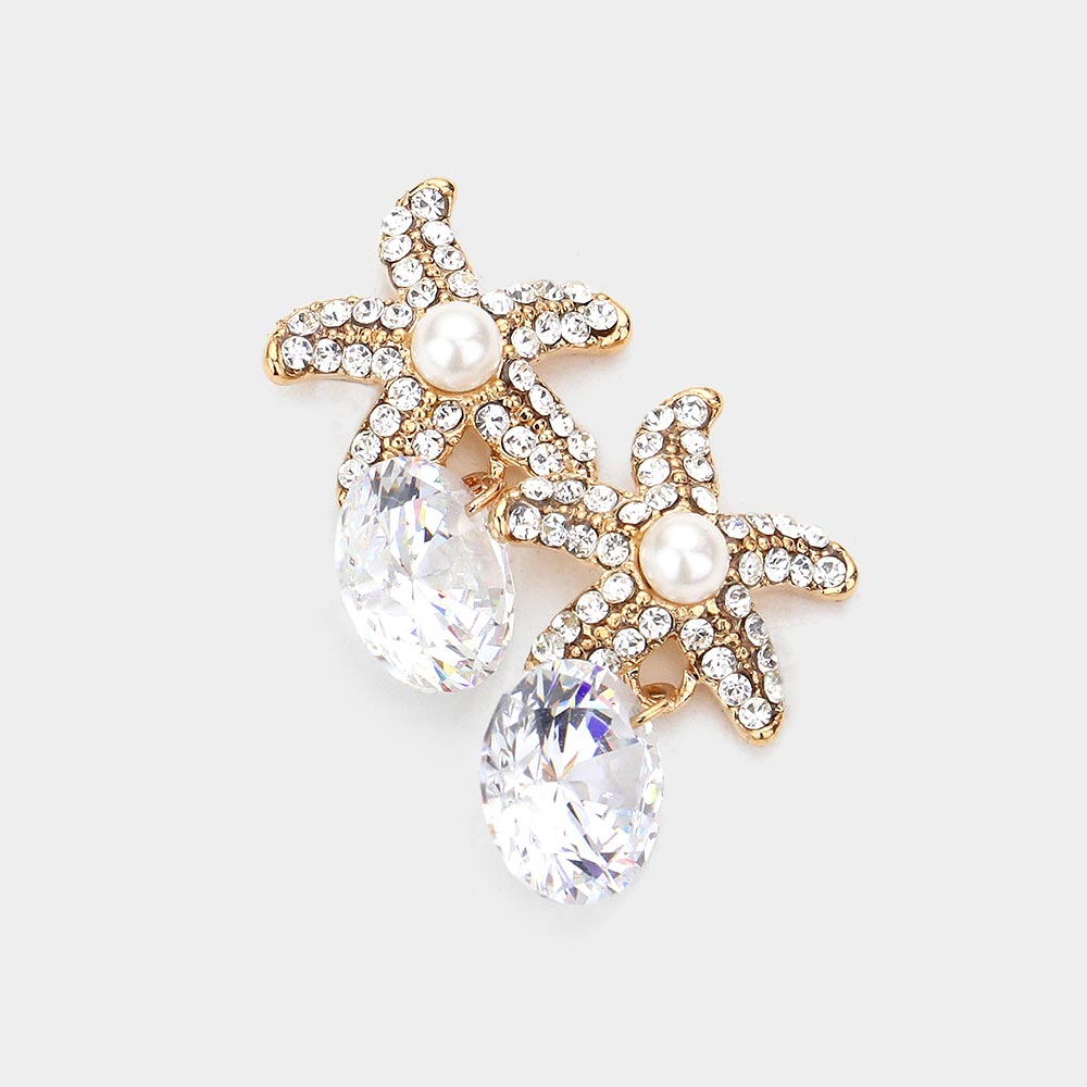 Crystal Cubic Zirconia Drop Starfish Earrings