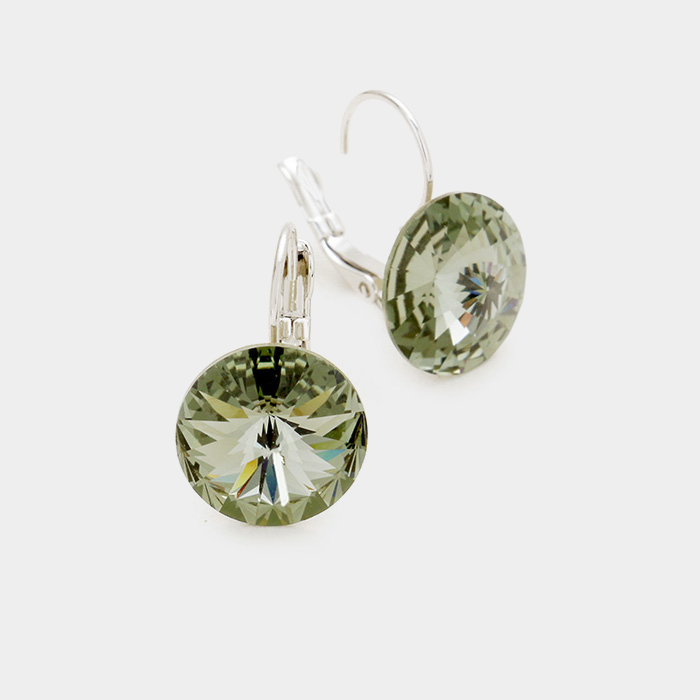 Genuine Round Crystal Lever Back Earrings