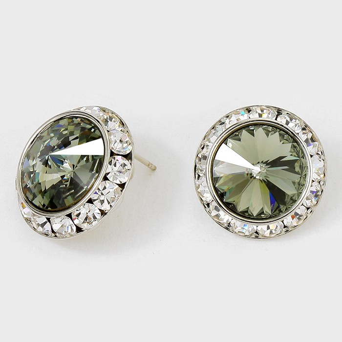 Rivoli Cut Genuine Crystal Round Stud Earrings