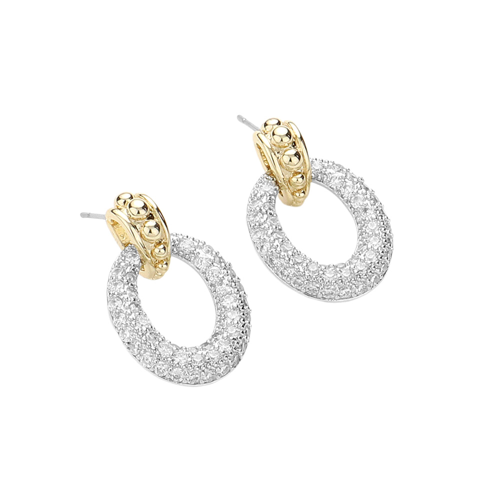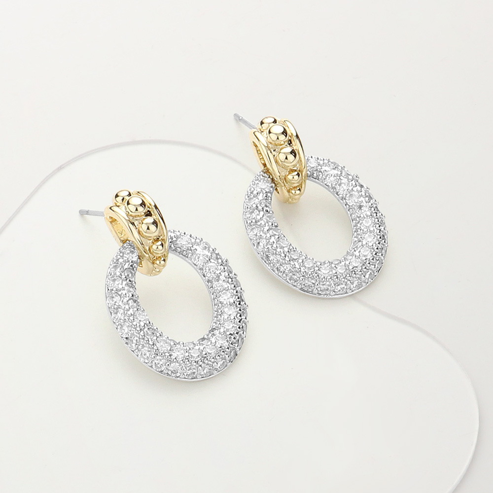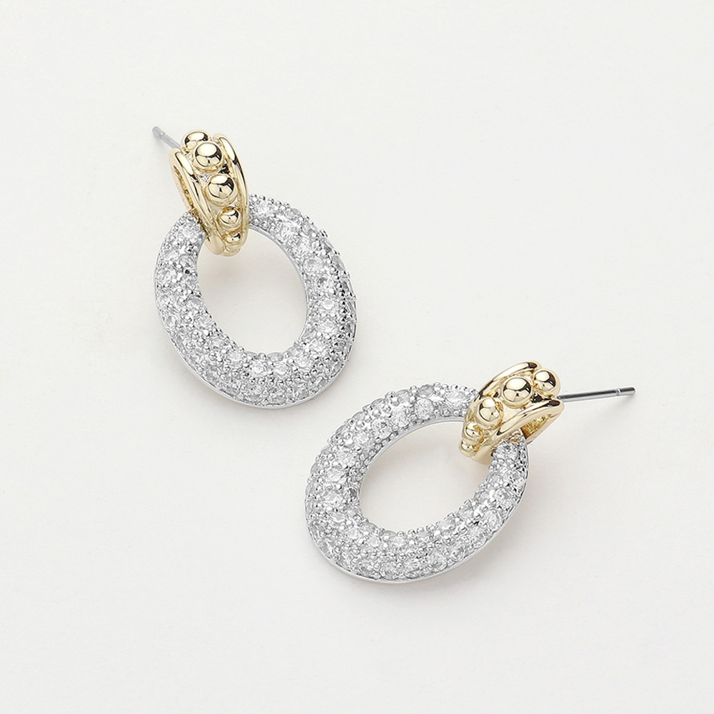 14K Gold Plated CZ Stone Paved Oval Dangle Evening Earrings