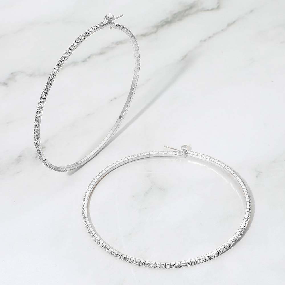 70mm Rhinestone Paved Hoop Earrings 70mm Rhinestone Paved Hoop Earrings