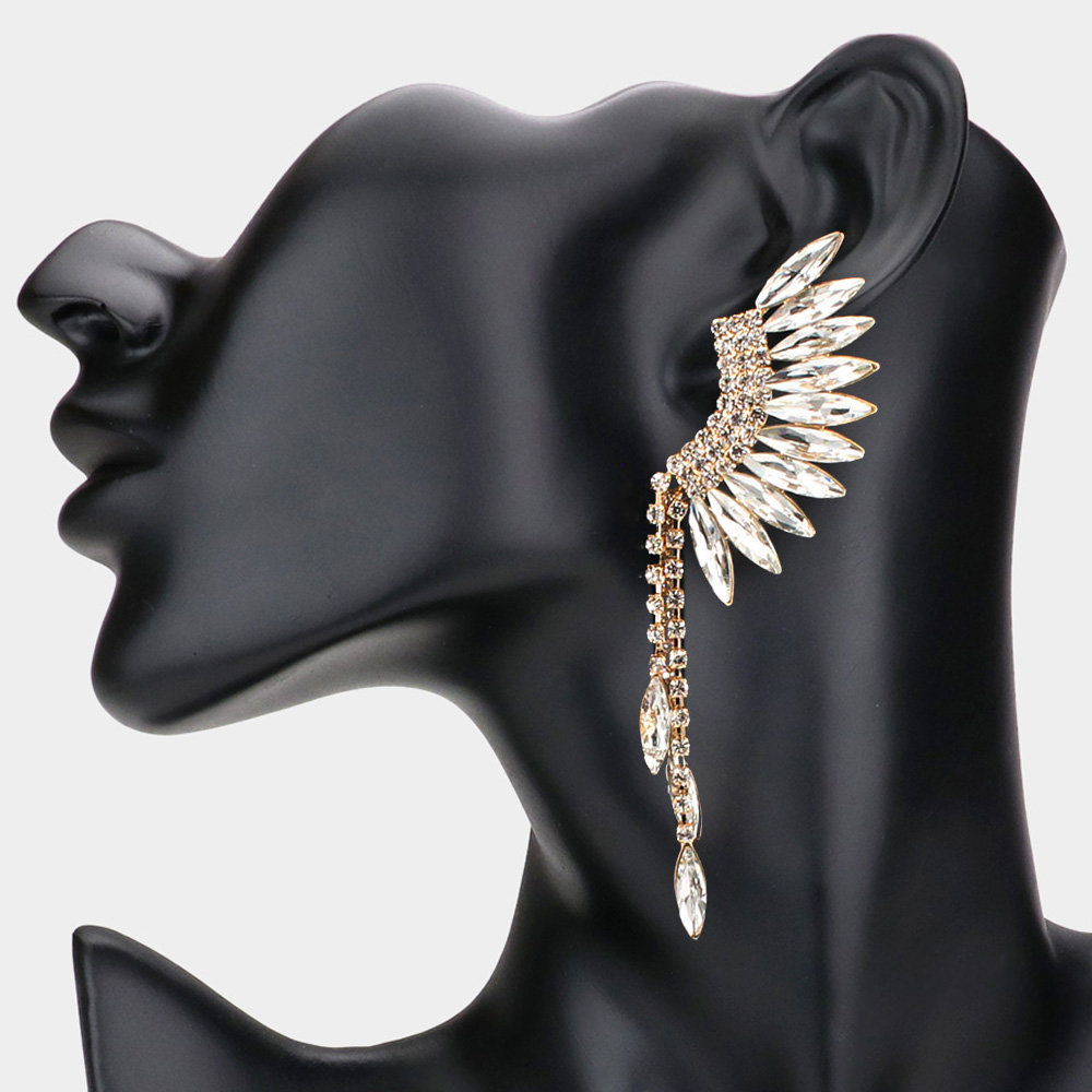 Stainless Steel Stone Paved Wing Pendant Necklace