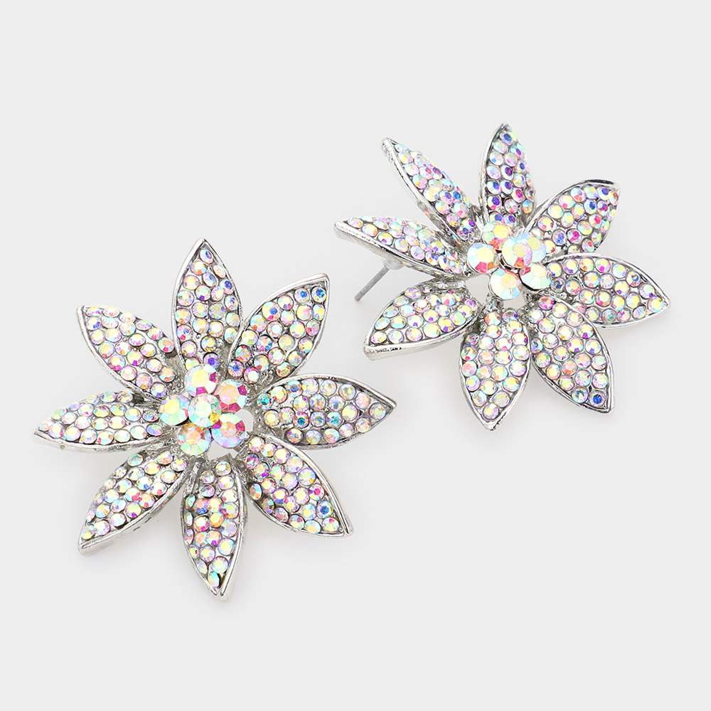 Round Stone Pointed Rhinestone Paved Flower Stretch Ring
