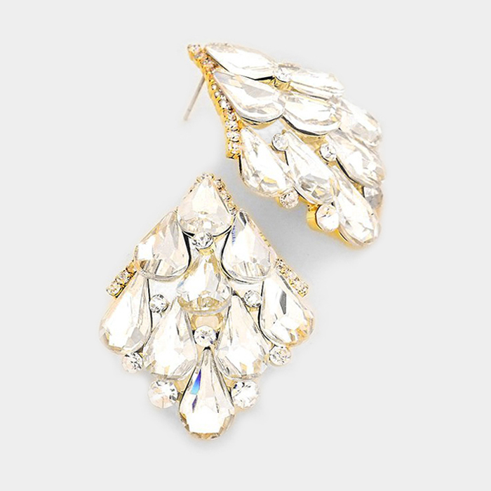 Crystal Teardrop Cluster Evening Earrings