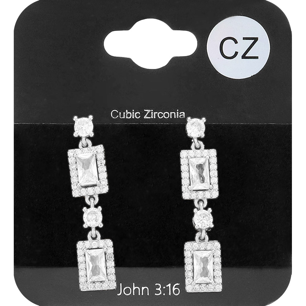 CZ Stone Cluster Dangle Evening Earrings
