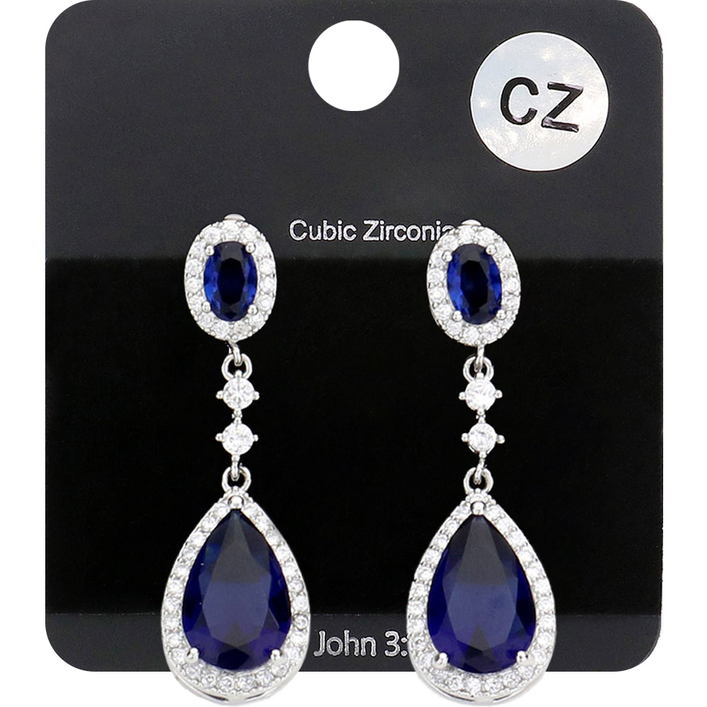 Details • Size : 0.4" X 1.3" • Post Back • These cubic zirconia teardrop dangle earrings showcase an elegant combination of oval and drop-shaped stones that radiate timeless beauty. Designed for formal occasions or special events, they bring sophistication and sparkle to any outfit, making them a graceful statement piece. • Lead and Nickel Compliant • CZ Cubic Zirconia