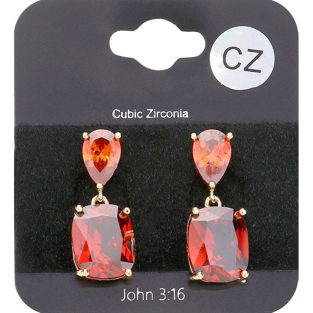 CZ Teardrop Rectangle Stone Cluster Dangle Evening Earrings