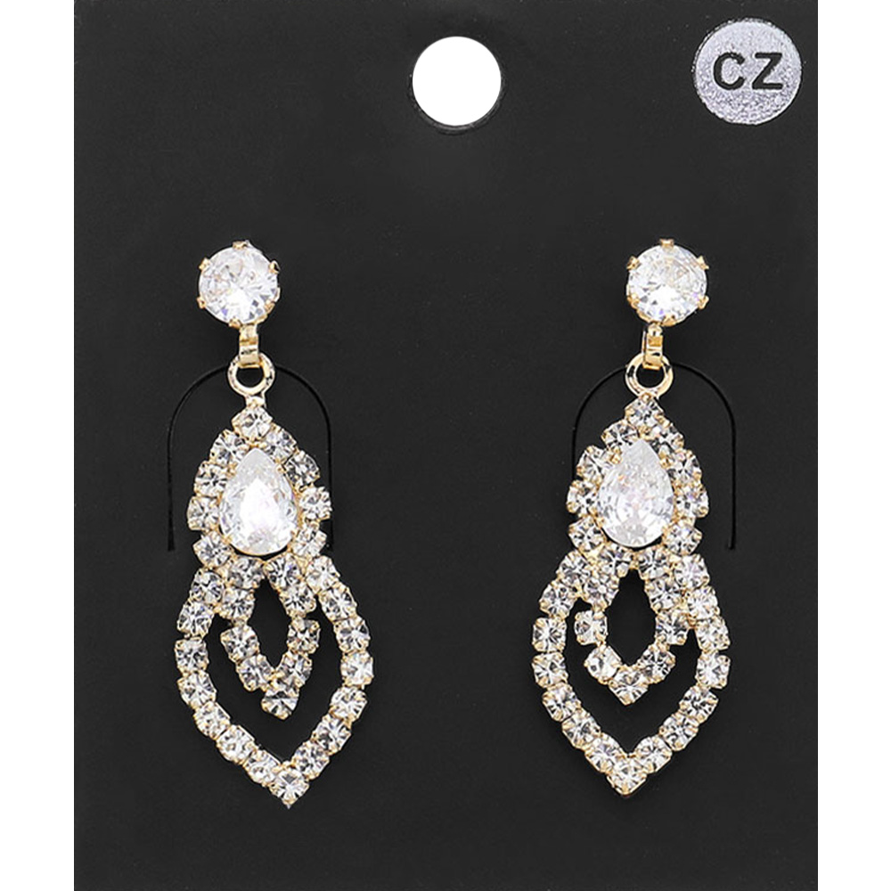 CZ Teardrop Stone Pointed Rhinestone Paved Evening Earrings
