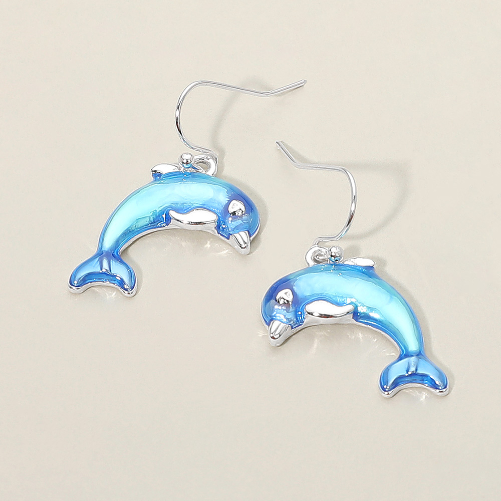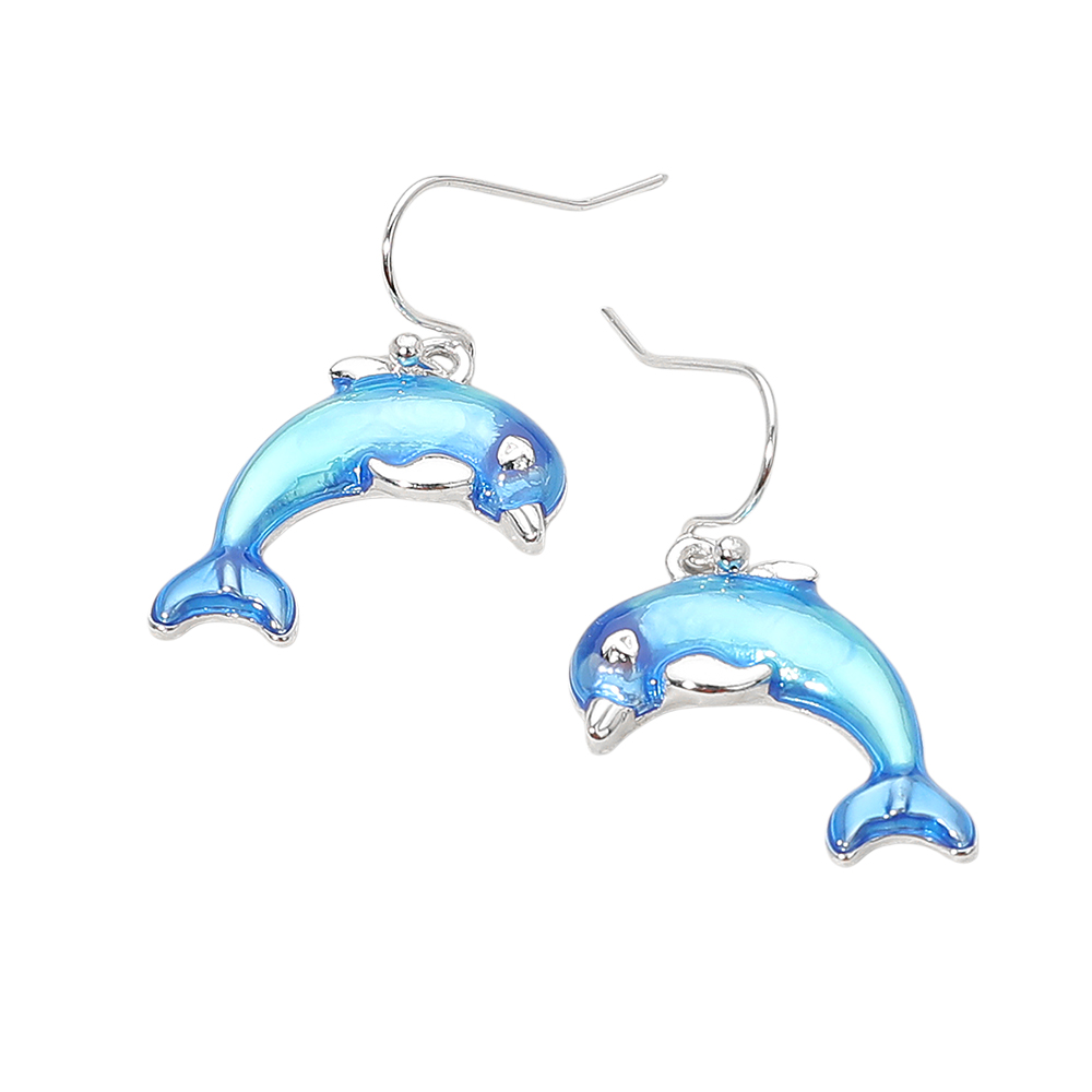 Details • Size : 0.75" X 1.4" • Fish Hook Back • Playful dolphin dangle earrings designed with smooth sculpted detail and gentle movement. A fun ocean-inspired accessory ideal for beach boutiques, summer collections, resort shops, gift stores, and marine-themed jewelry assortments that add charm and personality to everyday looks. • Lead and Nickel Compliant
