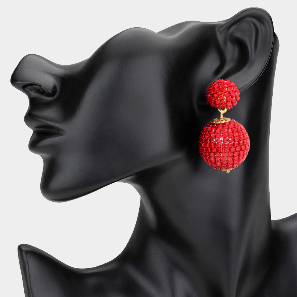 Double Rhinestone Ball Dangle Evening Earrings Double Rhinestone Ball Dangle Evening Earrings