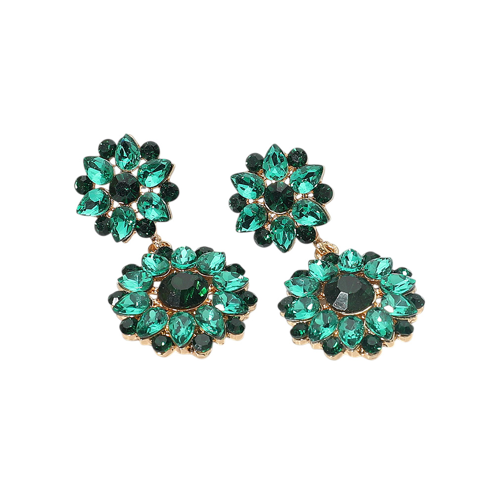 Floral Stone Cluster Drop Dangle Evening Earrings