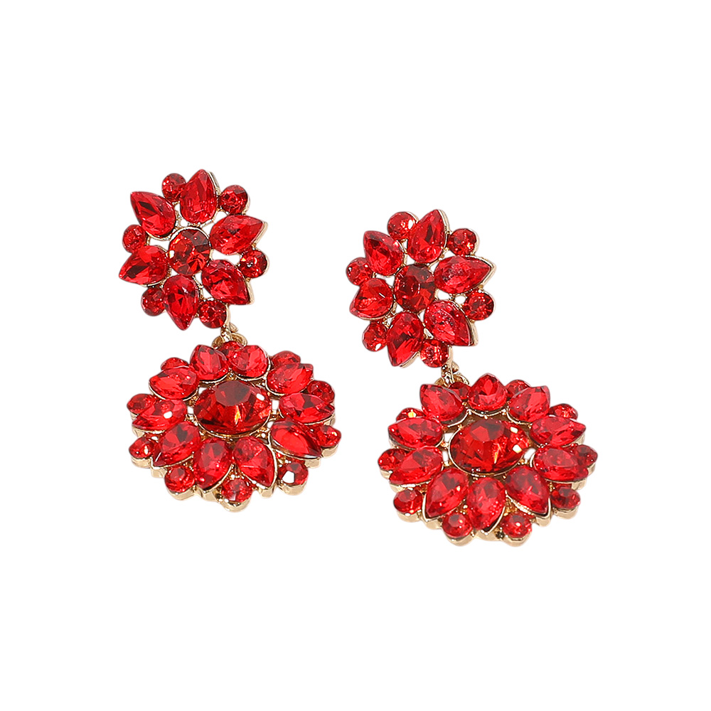 Floral Stone Cluster Drop Dangle Evening Earrings