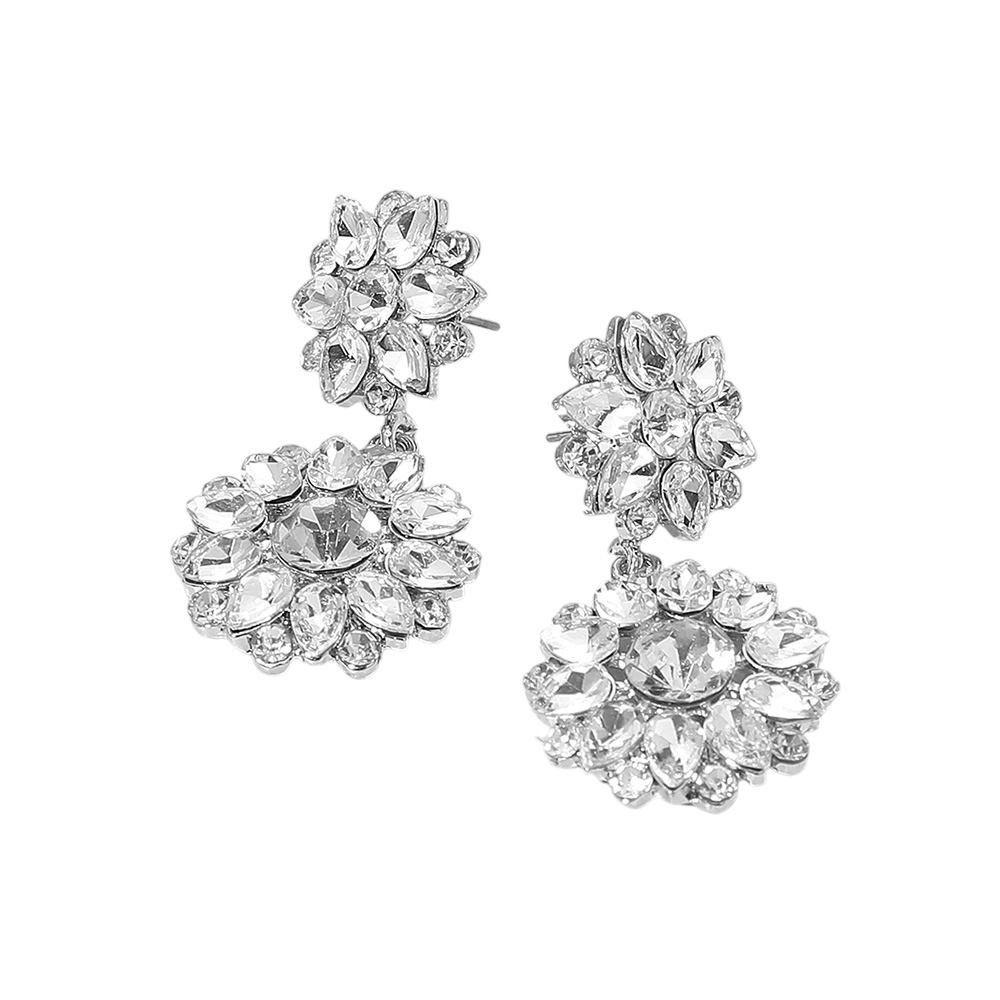Floral Stone Cluster Drop Dangle Evening Earrings