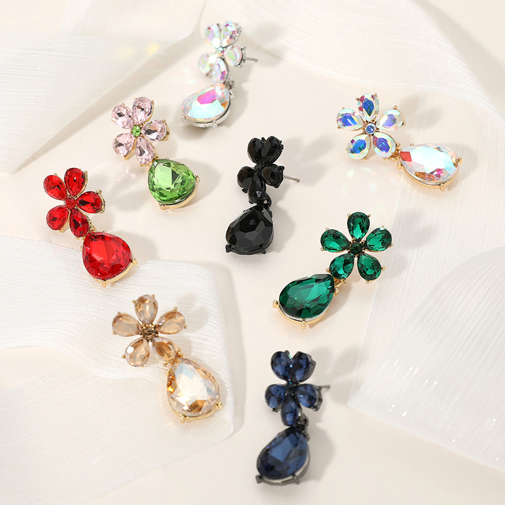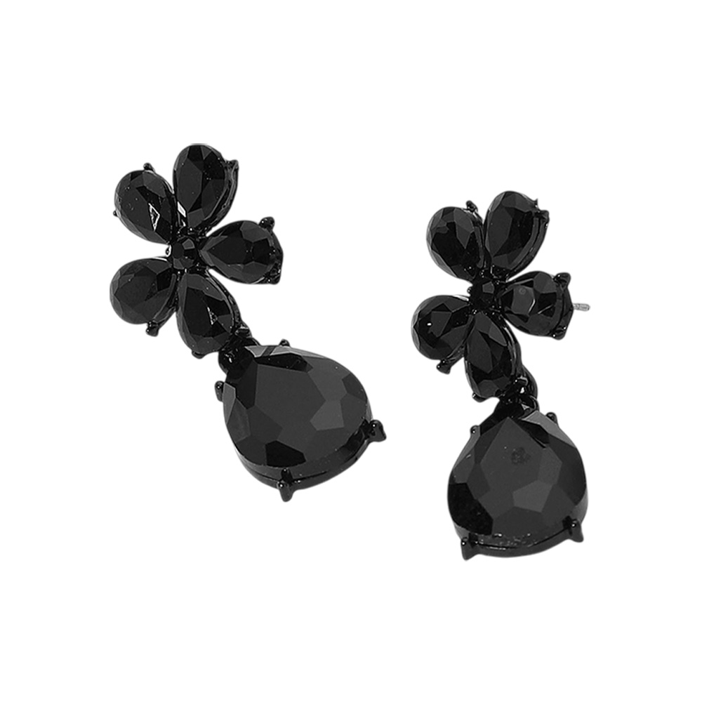 Flower Teardrop Stone Cluster Dangle Evening Earrings