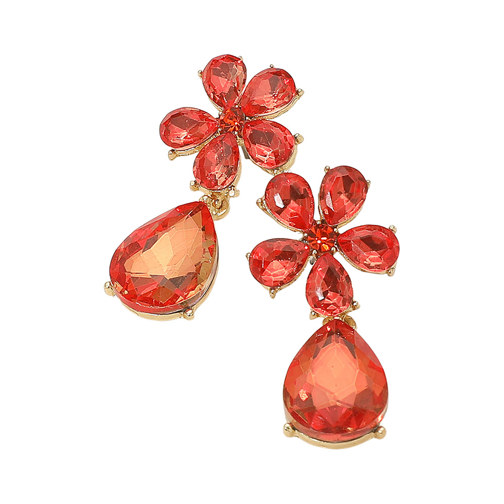 Flower Teardrop Stone Cluster Dangle Evening Earrings Flower Teardrop Stone Cluster Dangle Evening Earrings