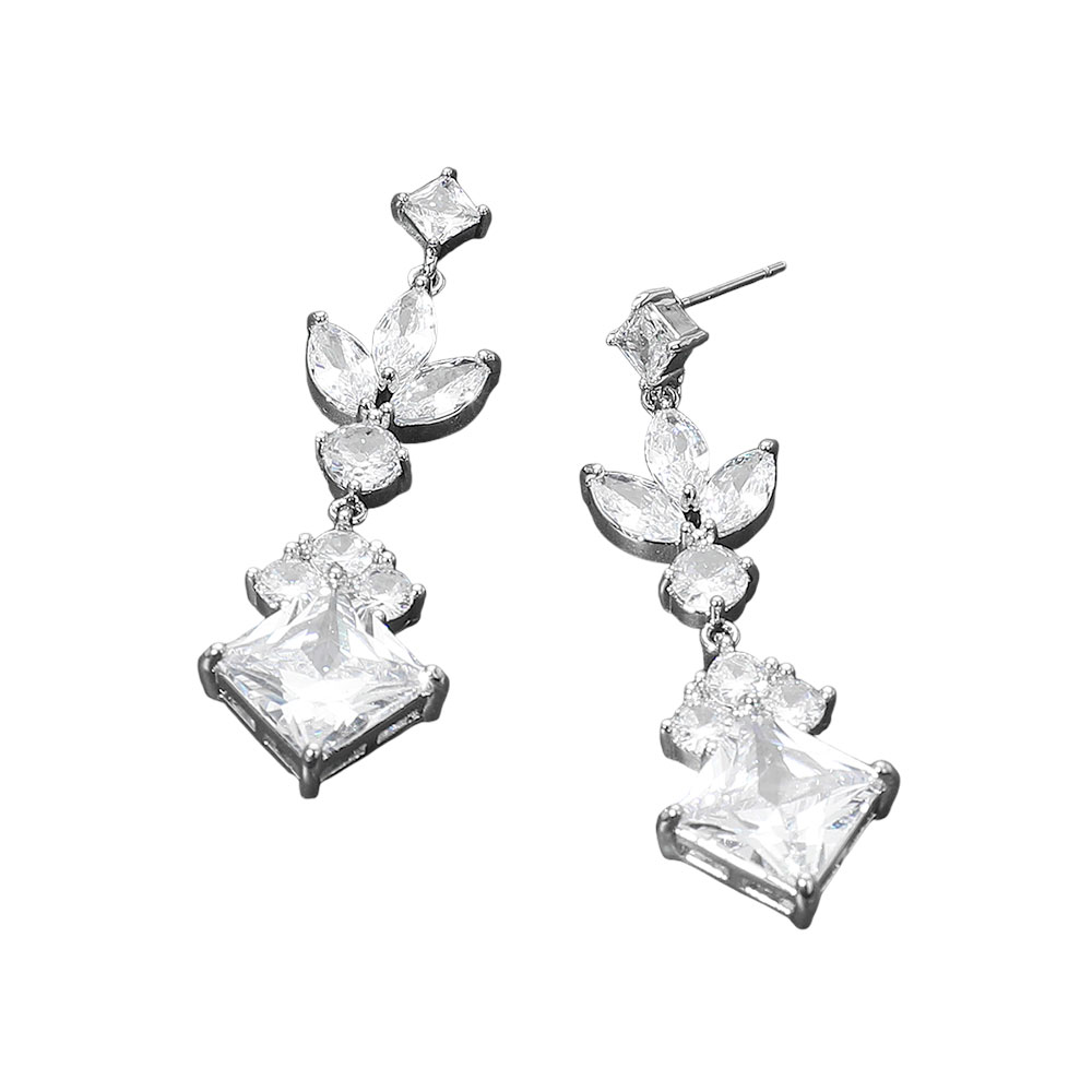 Details • Size : 0.7" X 1.8" • Post Back • These cubic zirconia geometric dangle earrings feature a stunning mix of shapes that create a refined, modern elegance. The intricate design highlights each stone’s brilliance, adding a radiant sparkle perfect for elevating both sophisticated evening wear and chic daytime looks. • CZ Cubic Zirconia • Lead and Nickel Compliant