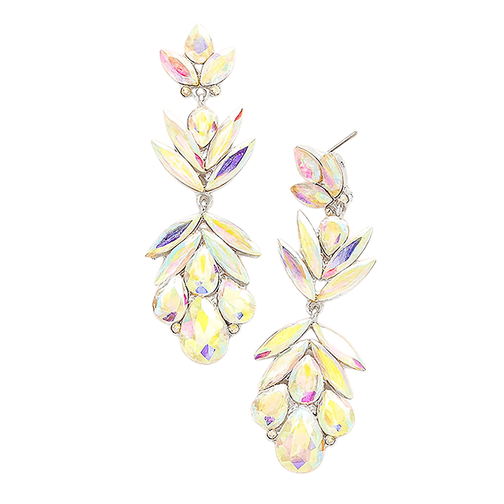• Elevate your style with these crystal drop leaf earrings. Designed with layered marquise and teardrop crystals in a cascading silhouette, they exude sophistication and glamour, perfect for weddings, evening parties, or special celebrations.