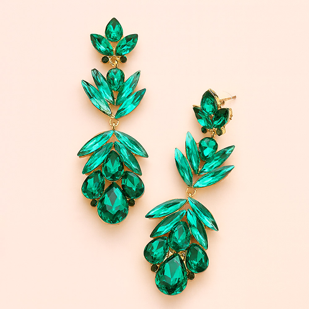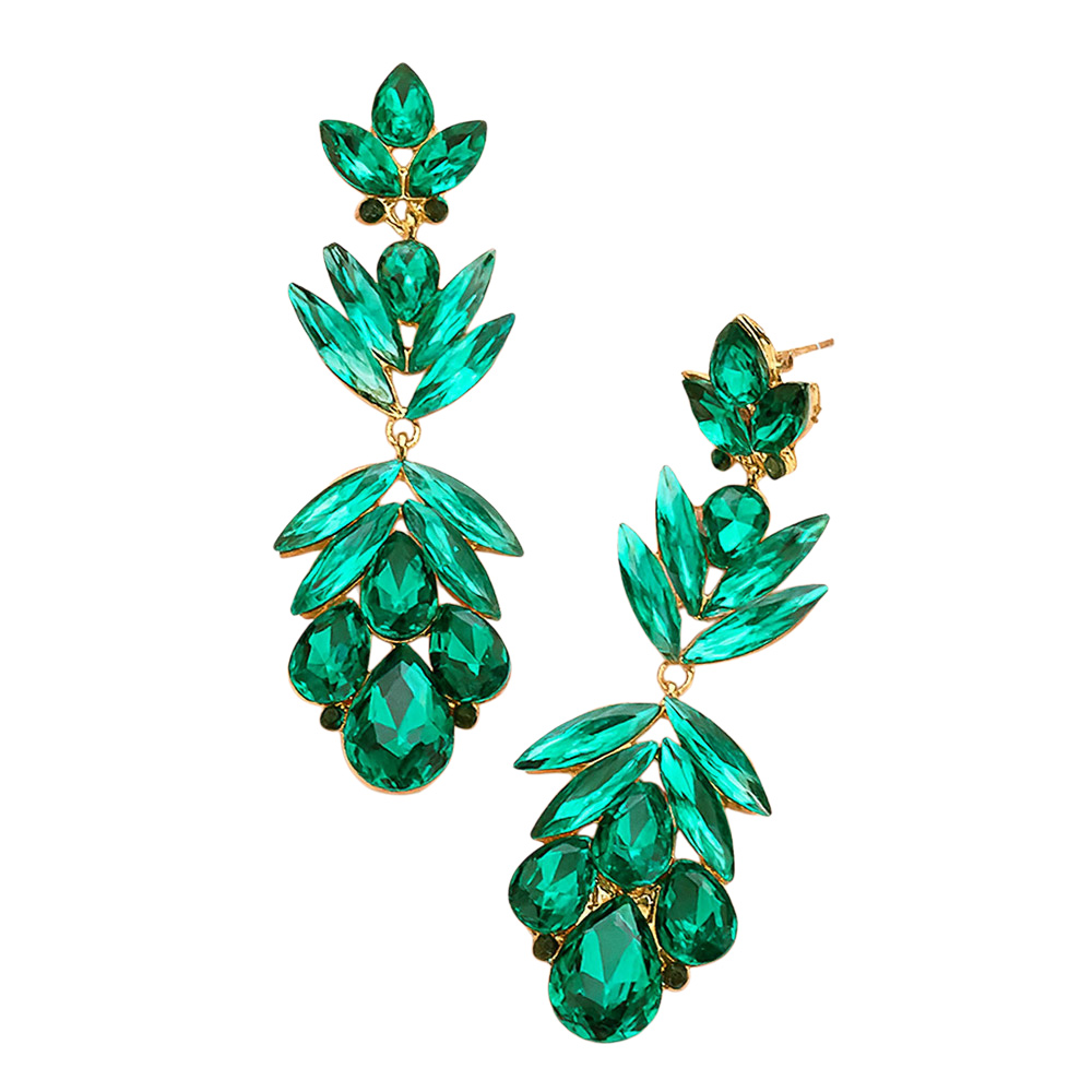 • Elevate your style with these crystal drop leaf earrings. Designed with layered marquise and teardrop crystals in a cascading silhouette, they exude sophistication and glamour, perfect for weddings, evening parties, or special celebrations.