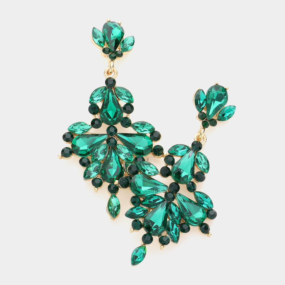 Rhinestone Trim Teardrop Cluster Vine Evening Earrings