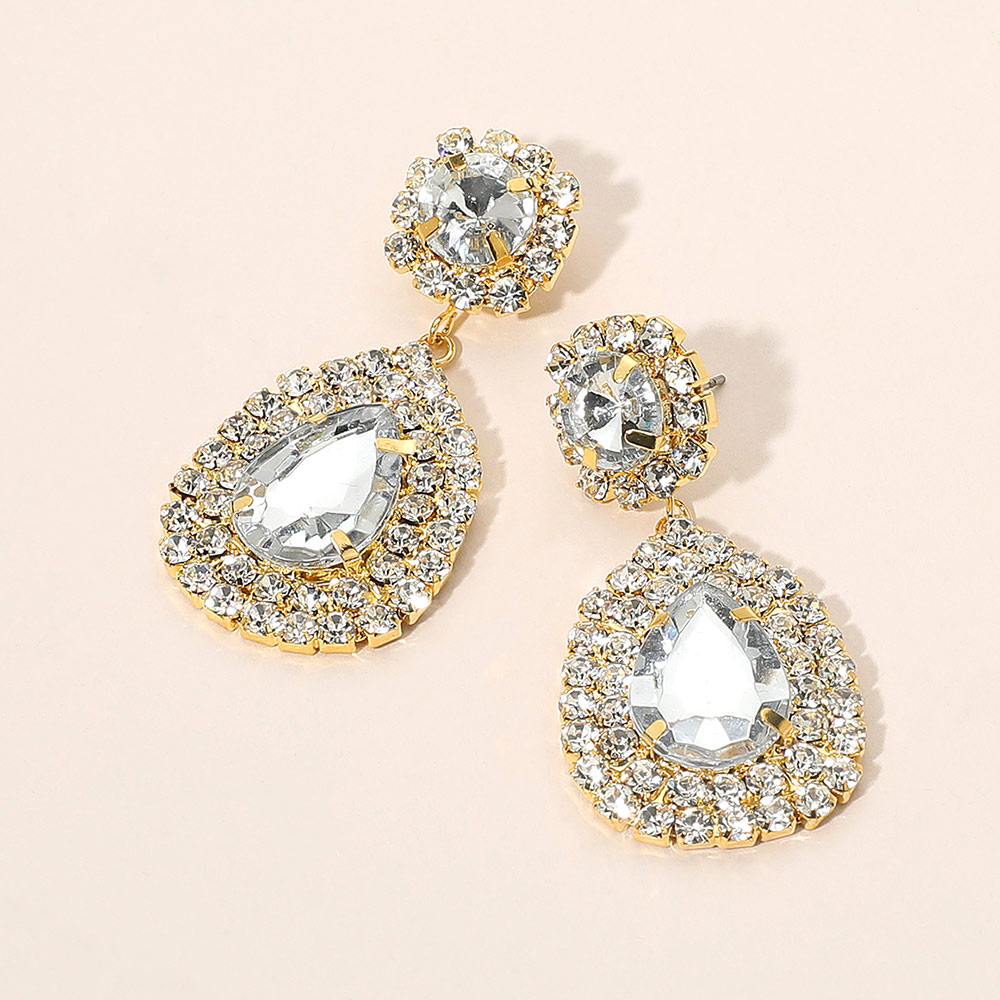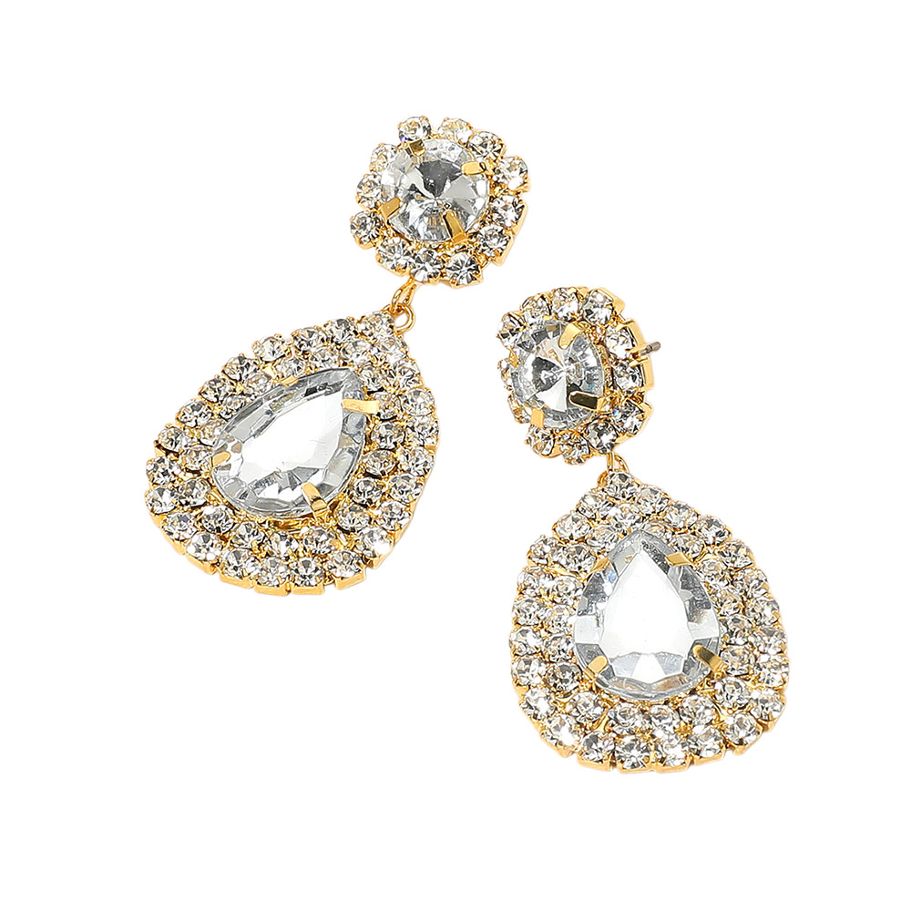 Glass Crystal Teardrop Evening Earrings