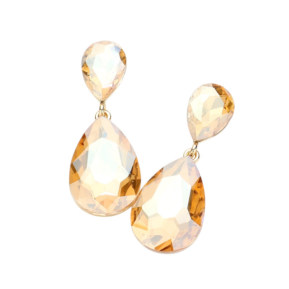 Glass crystal double teardrop evening earrings