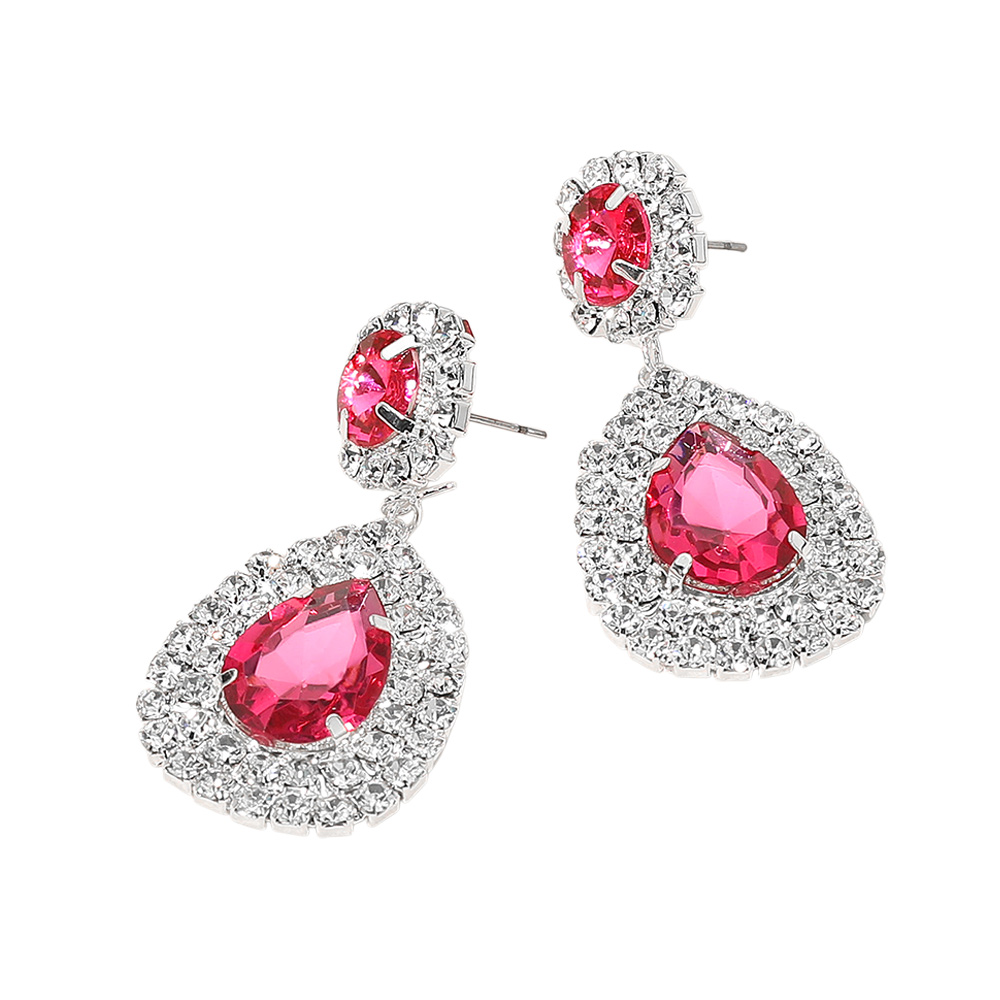 Glass Crystal Teardrop Evening Earrings