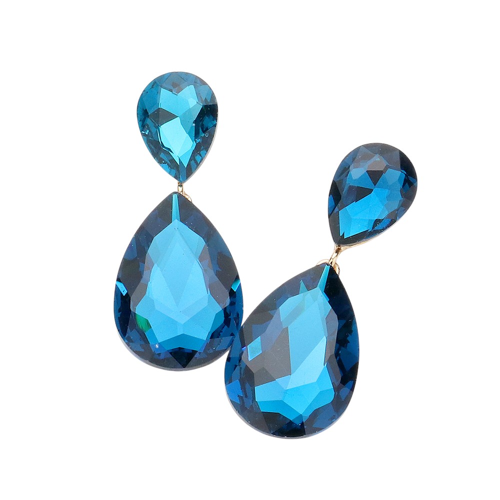 • Glamorous faceted teardrop dangle earrings featuring a radiant crystal-cut design that catches the light beautifully. Lightweight and sophisticated, these statement earrings elevate evening outfits, weddings, or special occasions with timeless elegance and refined sparkle.