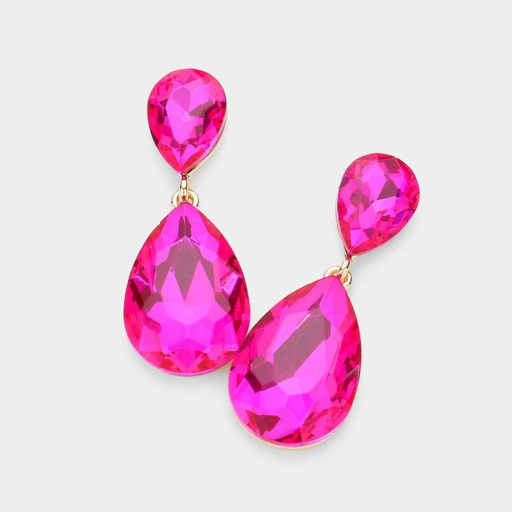 Glass Crystal Teardrop Evening Earrings