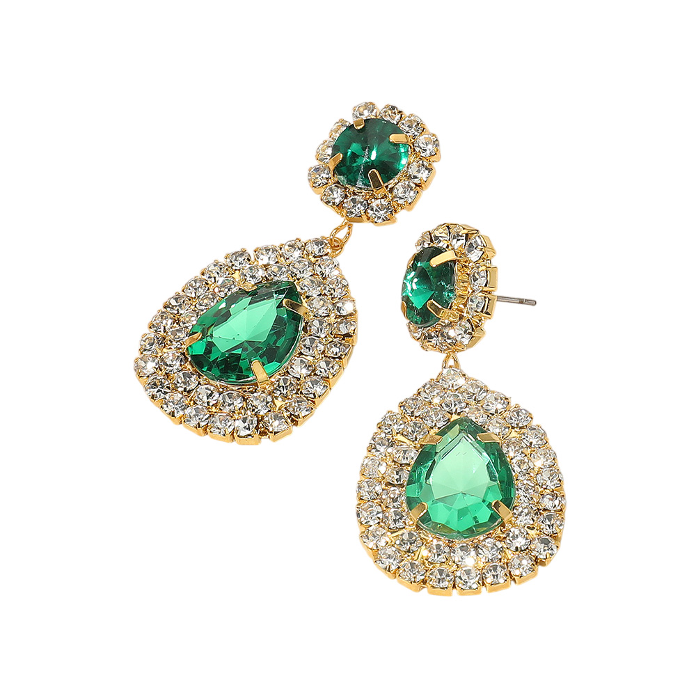 • Elegant teardrop statement earrings featuring a brilliant halo of crystals and a shimmering centerpiece. Perfect for weddings, formal events, or glamorous nights out, these earrings add radiant sparkle and sophistication to any outfit while ensuring timeless appeal.