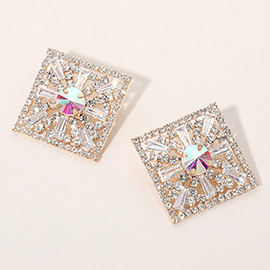 Glass Stone Embellished Diamond Frame Evening Earrings