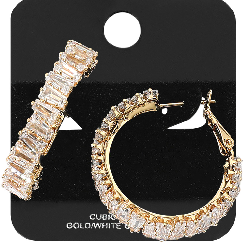 Gold Dipped Full Baguette CZ Stone Around Evening Hoop Earrings Gold Dipped Full Baguette CZ Stone Around Evening Hoop Earrings Gold Dipped Full Baguette CZ Stone Around Evening Hoop Earrings