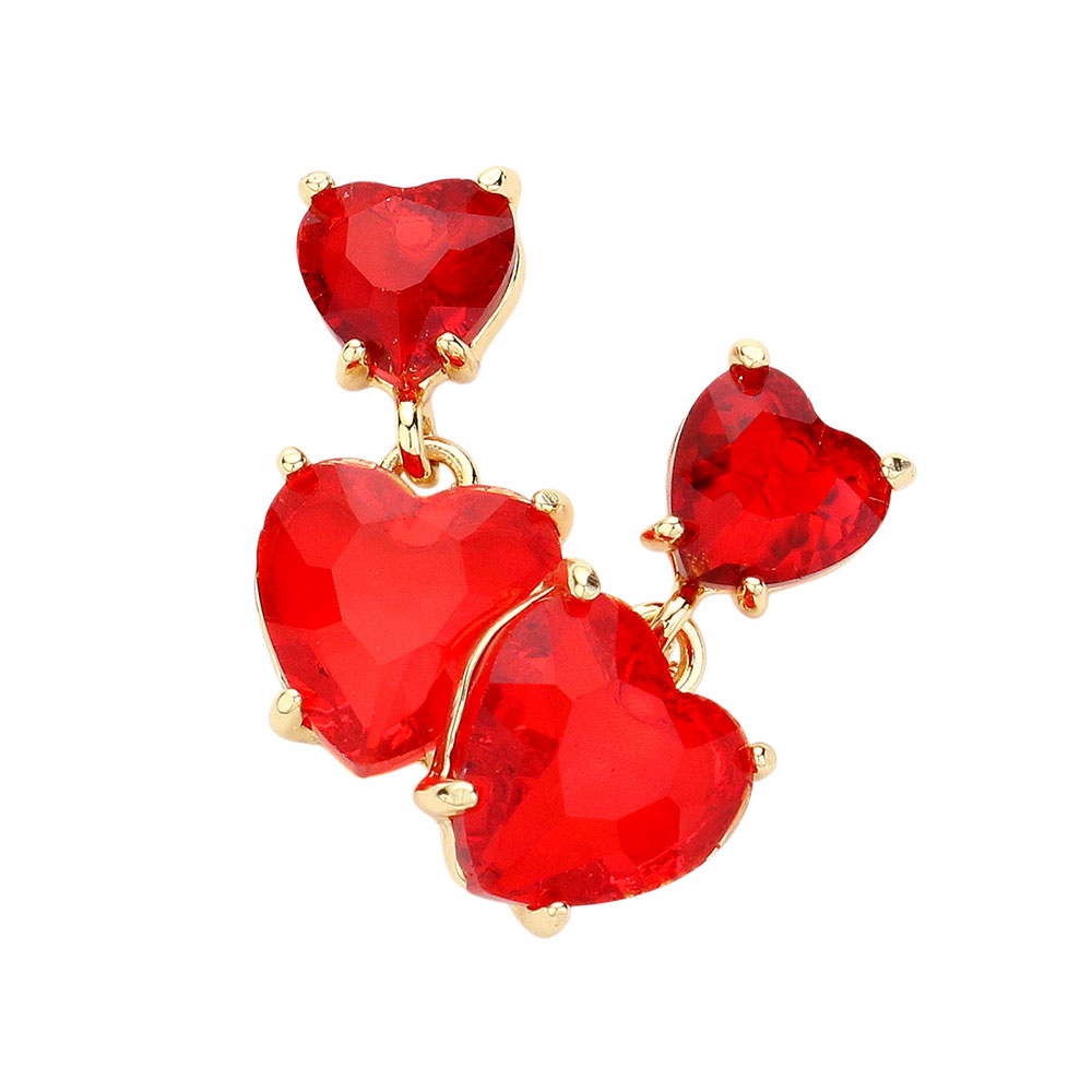 Details • Size : 0.6" X 1.1" • Post Back • Elegant double heart drop earrings featuring dazzling faceted stones that shine beautifully. A romantic and chic accessory perfect for date nights, special occasions, or gifting someone you love. • Lead and Nickel Compliant