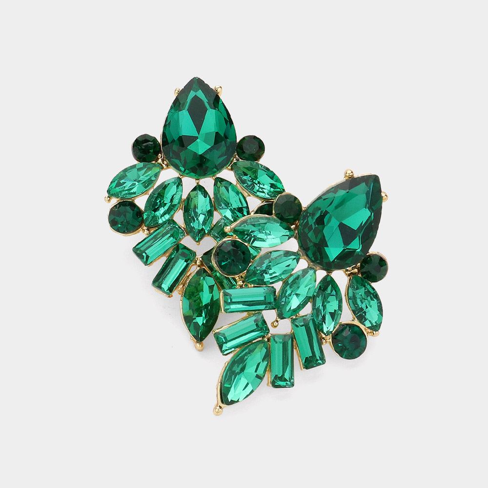 • Shine brilliantly with these radiant cluster stud earrings, designed with an array of faceted crystals in teardrop, oval, and baguette cuts. Their intricate arrangement adds a touch of glamour, making them the perfect accessory for special occasions or elevating your everyday chic look.