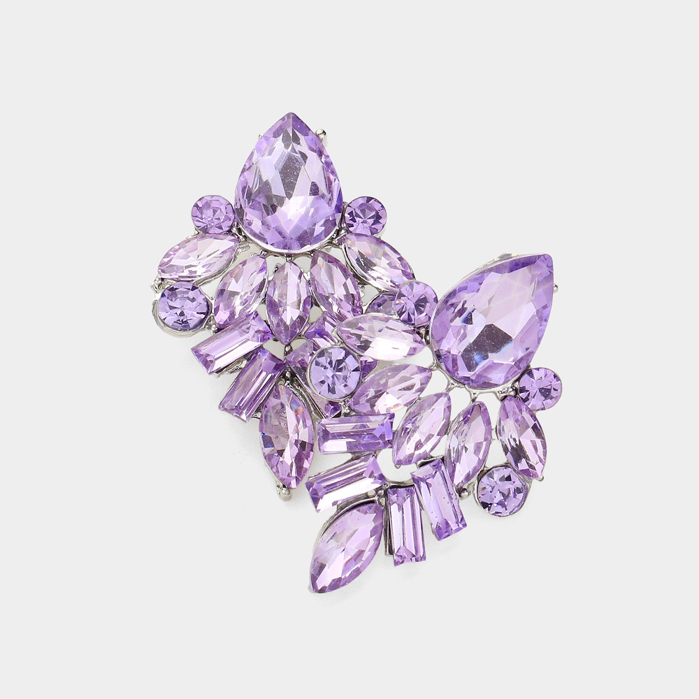 Details • Size : 1" X 1.4" • Post Back • Shine brilliantly with these radiant cluster stud earrings, designed with an array of faceted crystals in teardrop, oval, and baguette cuts. Their intricate arrangement adds a touch of glamour, making them the perfect accessory for special occasions or elevating your everyday chic look. • Lead and Nickel Compliant