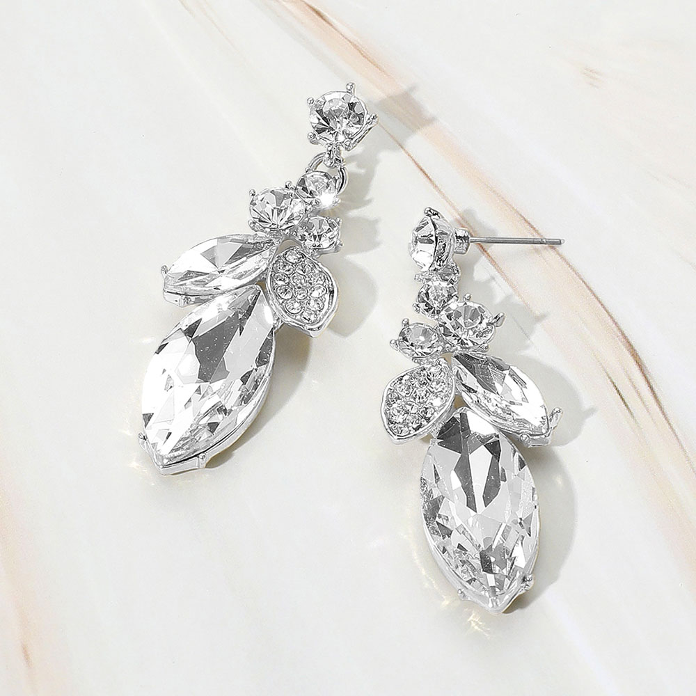 Marquise Stone Accented Dangle Evening Earrings