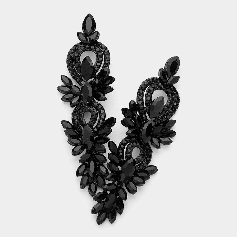 Oval Stone Accented V Shaped Rhinestone Necklace Clip on Earring Set