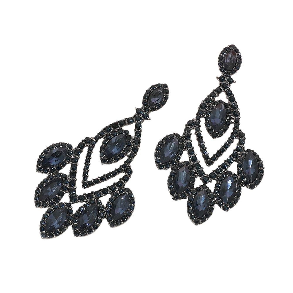 Marquise Stone Cluster Accented Chandelier Dangle Evening Earrings