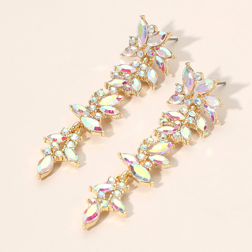 Marquise Stone Cluster Drop Dangle Evening Earrings