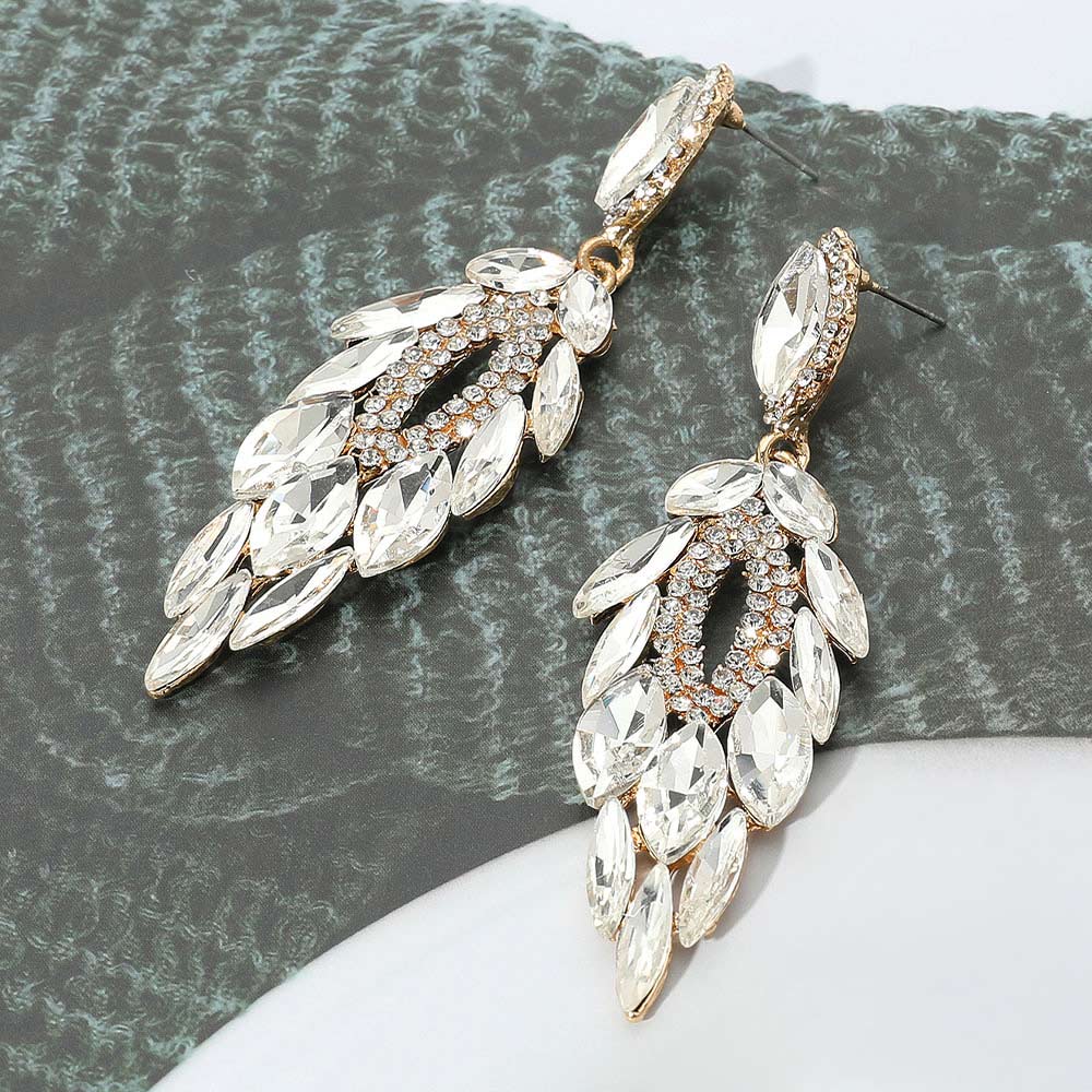 Marquise Stone Cluster Embellished Dangle Evening Earrings