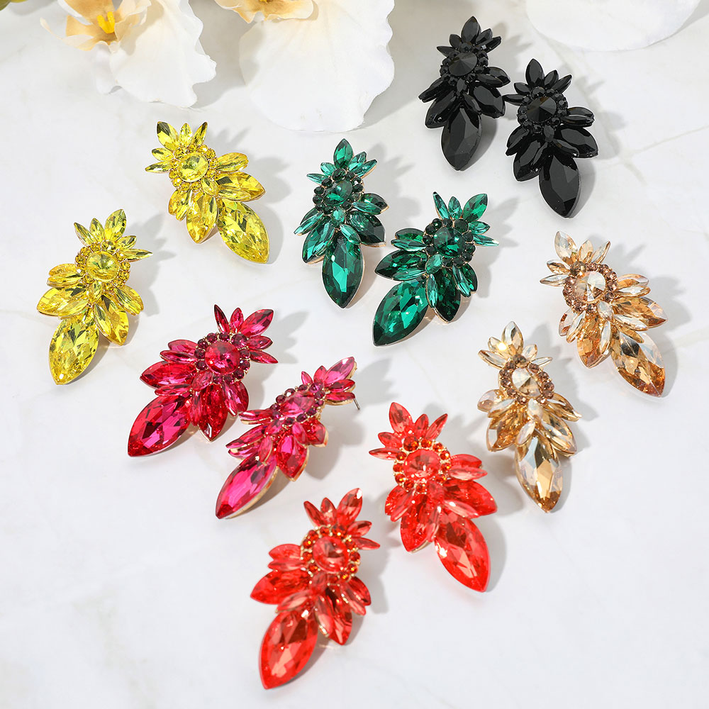 • Radiant iridescent cluster earrings with marquise and round-cut stones that shimmer beautifully from every angle. A striking accessory perfect for evening events, weddings, or festive occasions to add a bold sparkle.