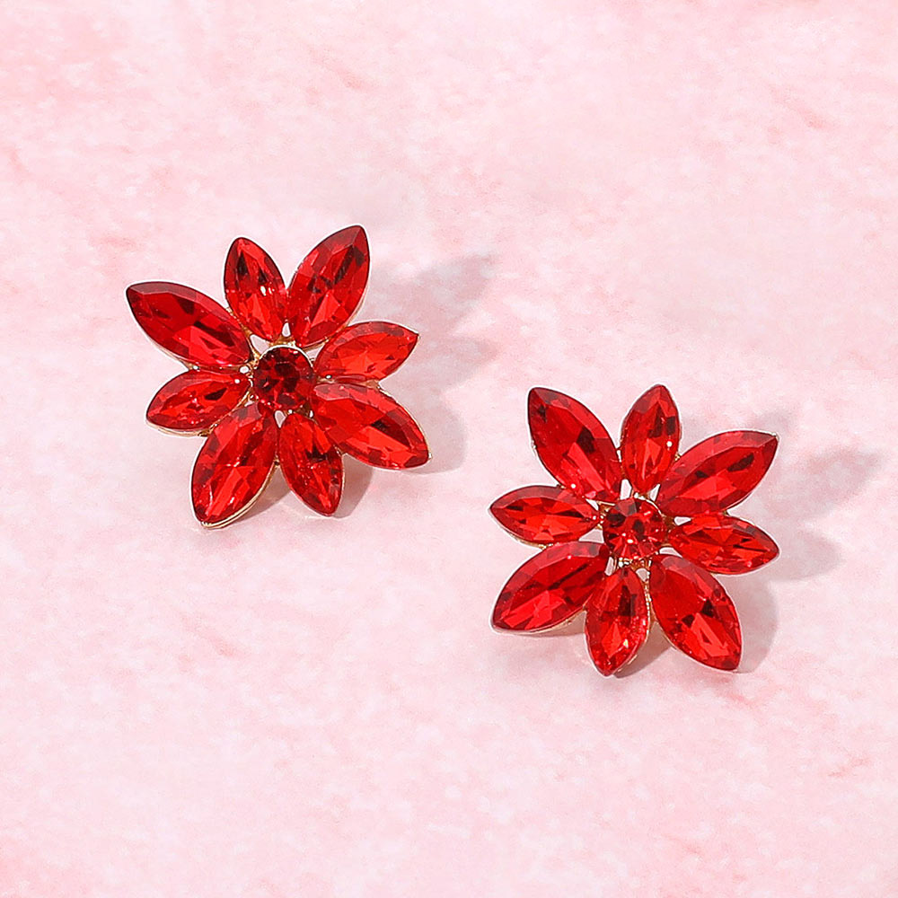 Details • Size : 1" X 1" • Post Back • Add a touch of radiant beauty with these floral crystal stud earrings featuring faceted petals that capture the light with every movement. Perfect for weddings, special events, or everyday elegance, they bring timeless sparkle and sophistication to any look effortlessly. • Lead and Nickel Compliant