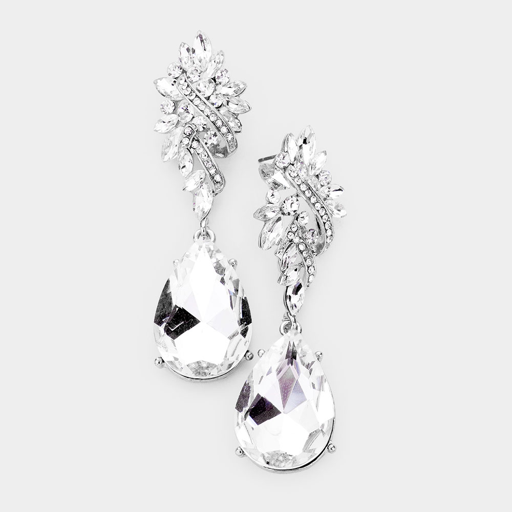 Marquise Stone Cluster Teardrop Dangle Evening Earrings