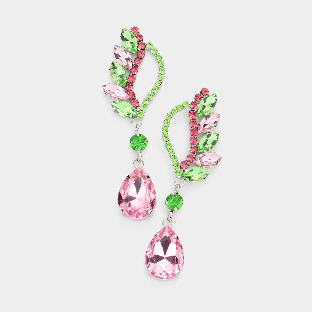 Marquise Stone Cluster Teardrop Link Dangle Evening Earrings