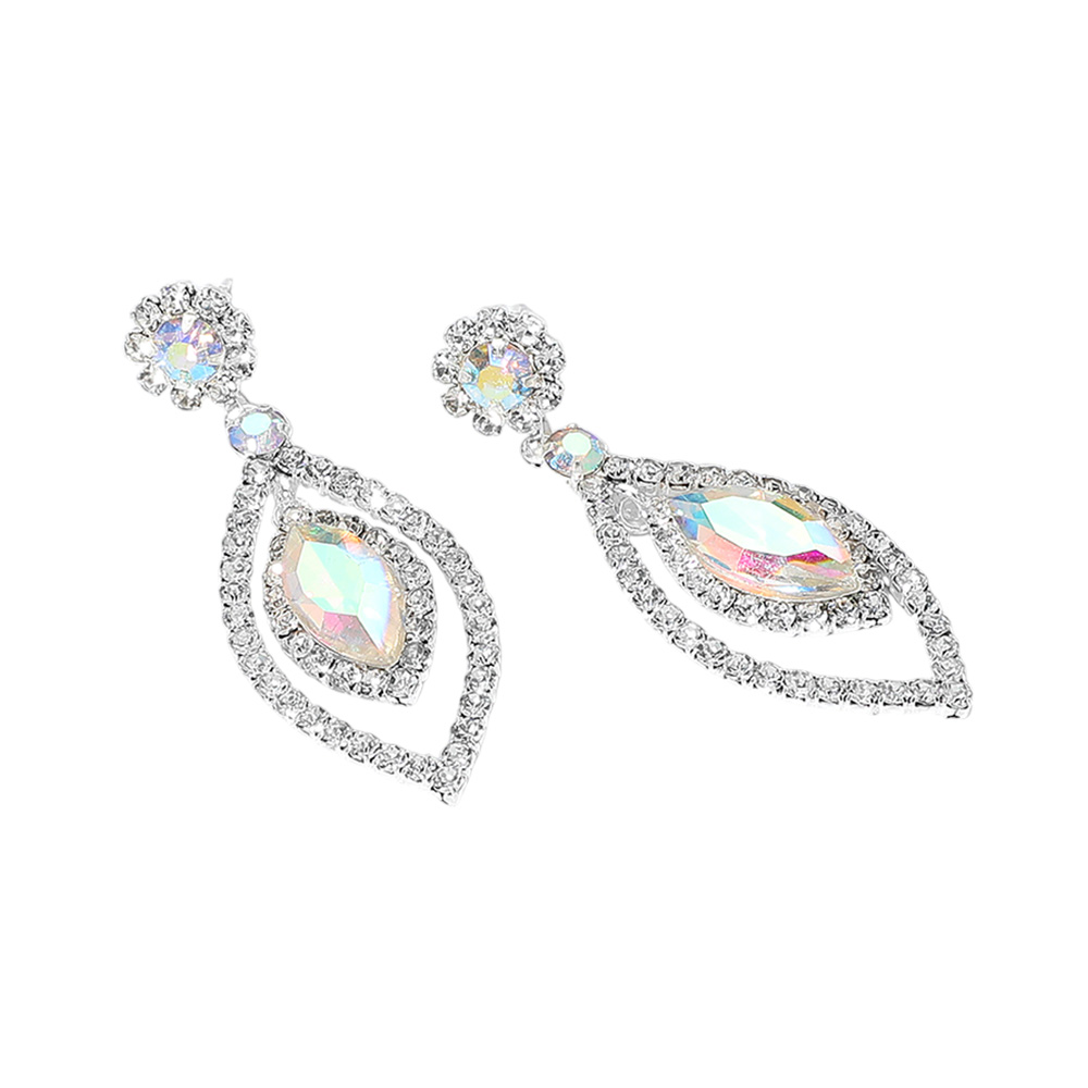 Marquise Stone Cluster Embellished Dangle Evening Earrings