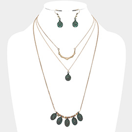 Crystal Rhinestone Bubbly Teardrop Necklace Clip on Earring Set