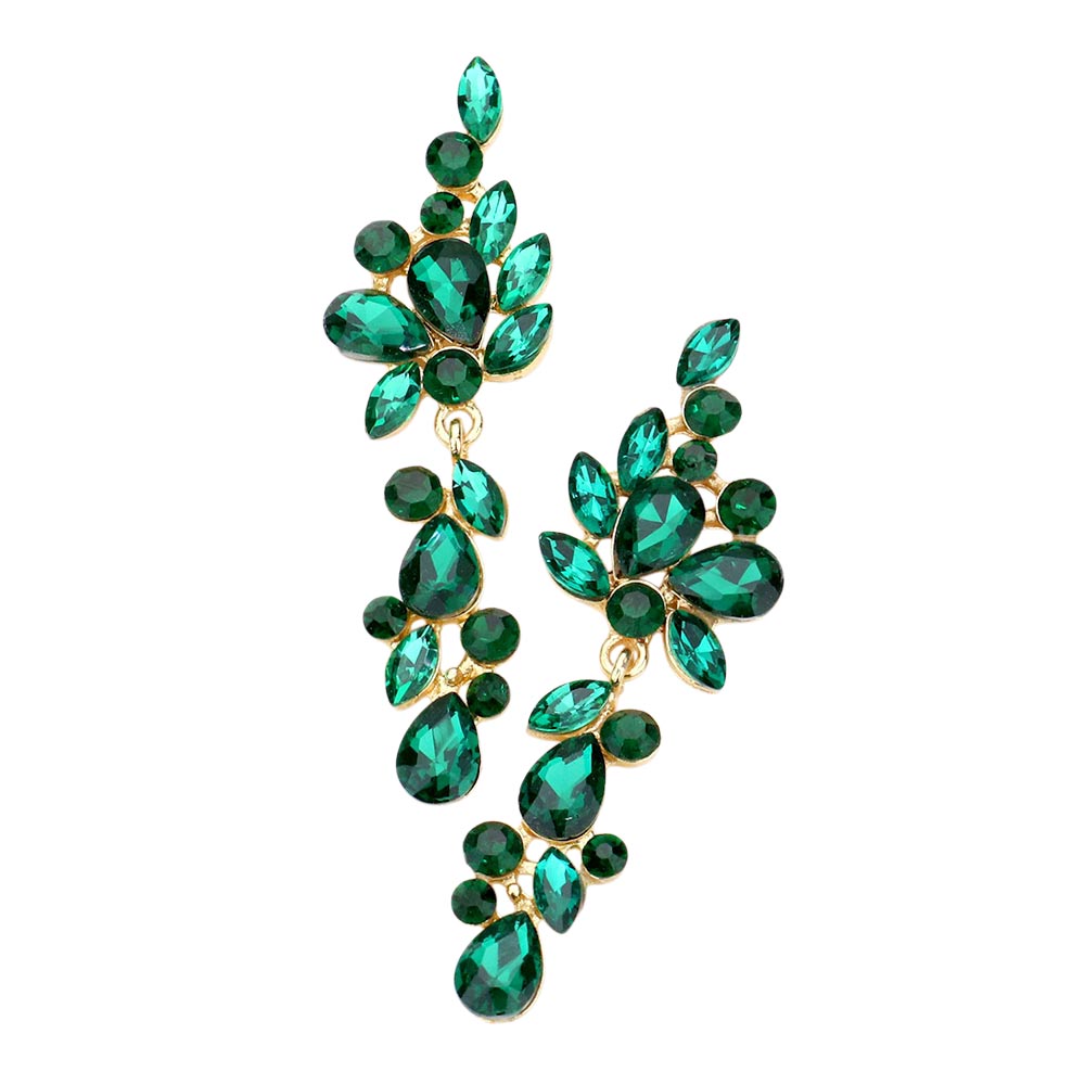 Multi Stone Cluster Vine Dangle Evening Earrings Multi Stone Cluster Vine Dangle Evening Earrings
