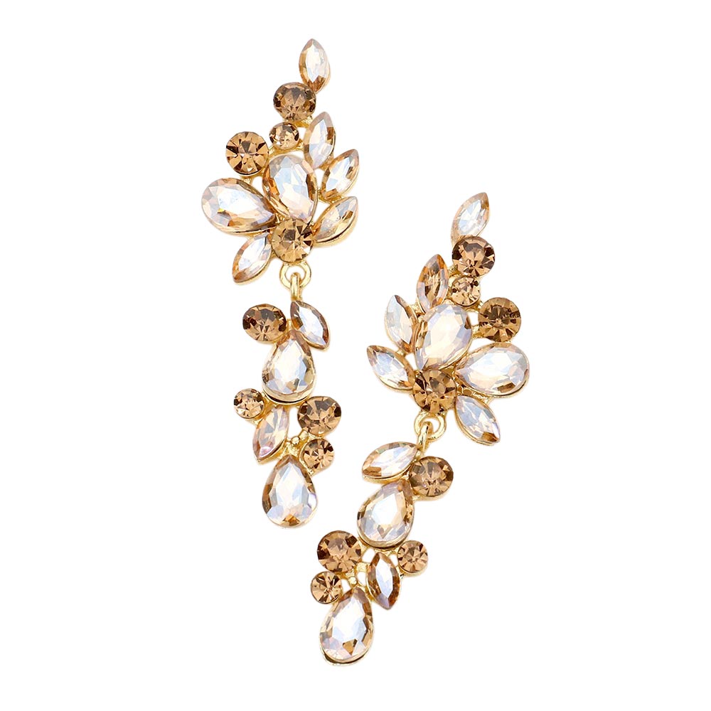 Multi Stone Cluster Vine Dangle Evening Earrings Multi Stone Cluster Vine Dangle Evening Earrings